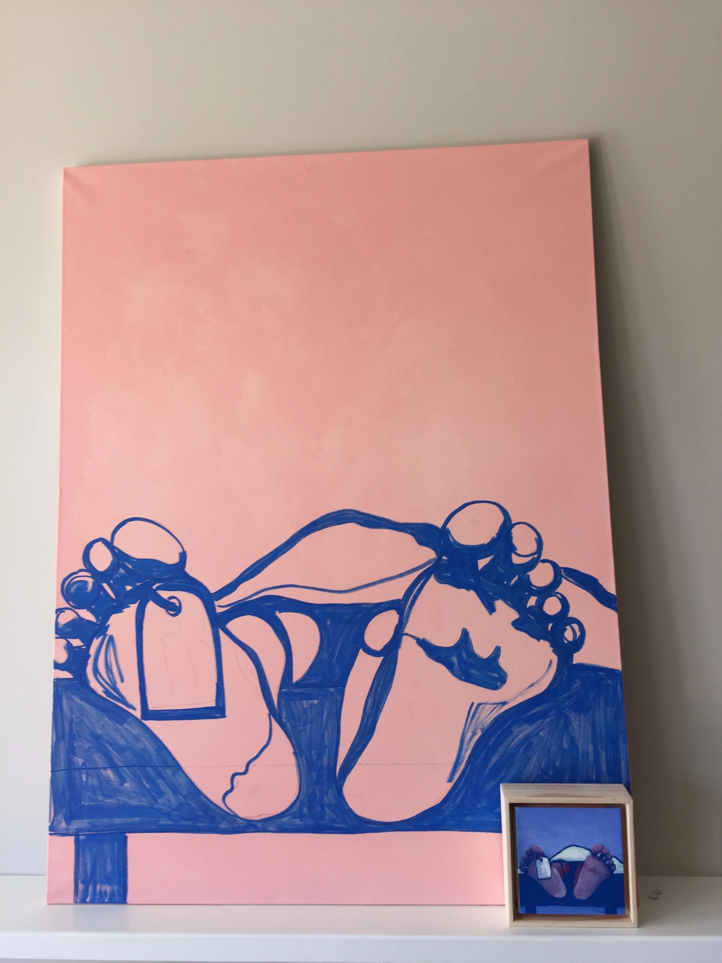 Her's my little guy tickling the feet. The light portrait pink underpainting is needed to get the flesh tones just right.