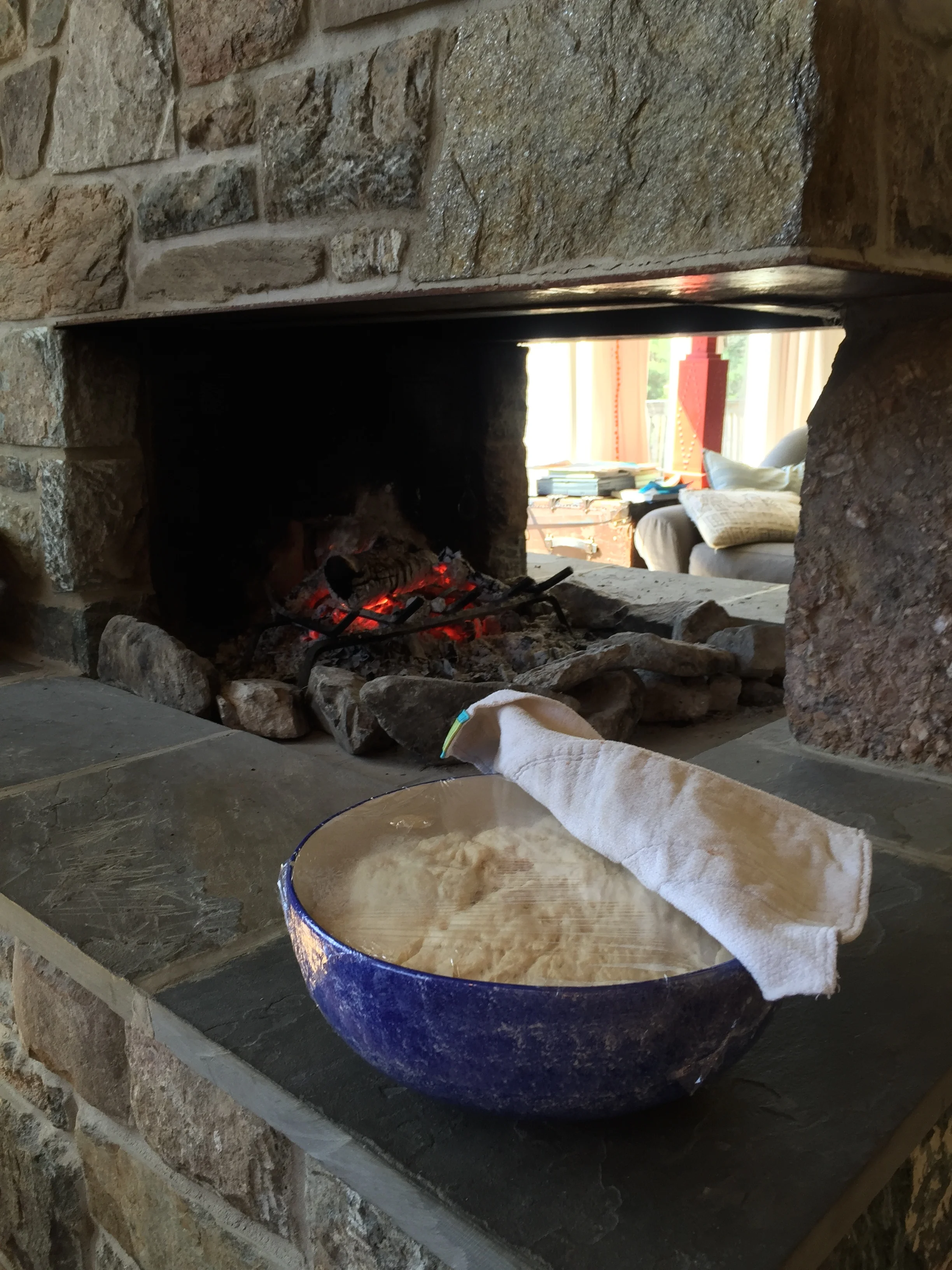 Here's the best part about working at home on a cold day...I can make sourdough bread and let it rise by the cherrywood fire while I paint a few feet away at the island. Can you smell all the goodness from where you are?