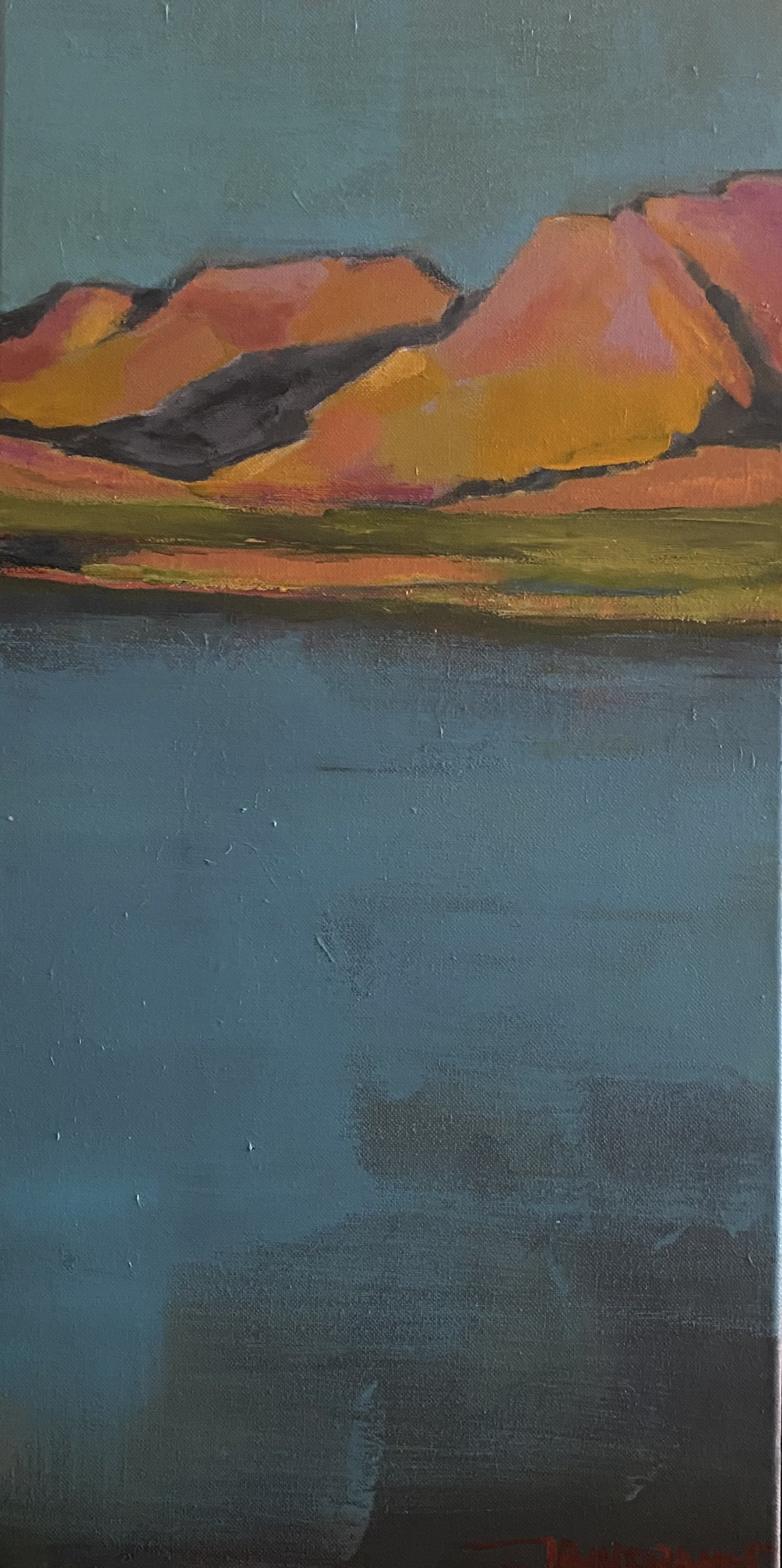 Finally done with this piece. After much back and forth, I like the simplicity and bold color and am concerned that adding in more at the lower portion of the canvas will simply render it too busy. Please use contact page to inquire. This piece is both soft and saturated. Perfect for a smaller room or a pop of color!